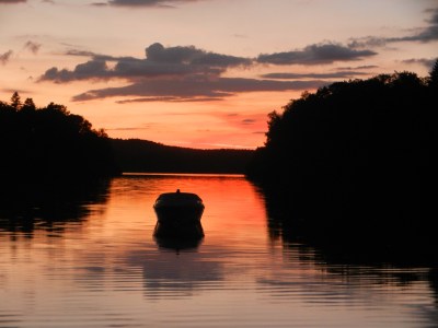 Là-bas, amarrée à une bouée au milieu du lac, une barque tranquille se balançait.